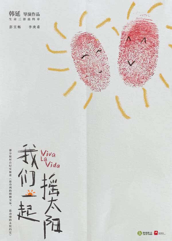 在此次发布的概念海报中,两枚红色指纹印出两个灿烂太阳,拥抱成心型,相互观望着,与片名“我们一起摇太阳”相呼应,赋予了这部电影一抹温暖治愈的亮色。而该片外文名“Viva La Vida”源于西班牙语,译为“生命万岁”,更是对影片主题的深刻诠释。两者结合既是对人间好时光的希冀和歌颂,也是故事中两位主人公对彼此生命的寄望和鼓舞。而彭昱畅和李庚希在该片中为首次合作,让人期待不已。